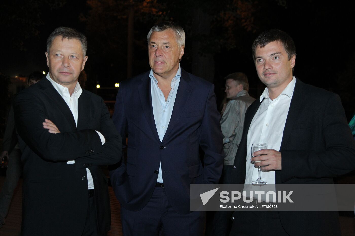 Sergei Tolstikov, Head of the Foundation for Cinema Support, Vyacheslav Telnov, Director of the Cinematography Department, and Dmitry Litvinov, Planeta Inform CEO, (left to right) at the 34th Moscow International Film Festival opening party.