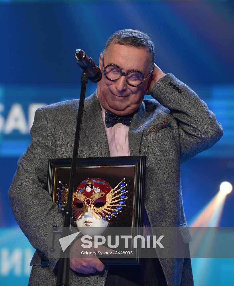 Designer Sergei Barkhin ('Talents and admirers', Vladimir Mayakovsky Theater, Moscow) receives his 'Drama/Best designer' prize during the 'Golden Mask' Award Ceremony, held at Stanislavsky and Nemirovich-Danchenko Moscow Music Theatre.