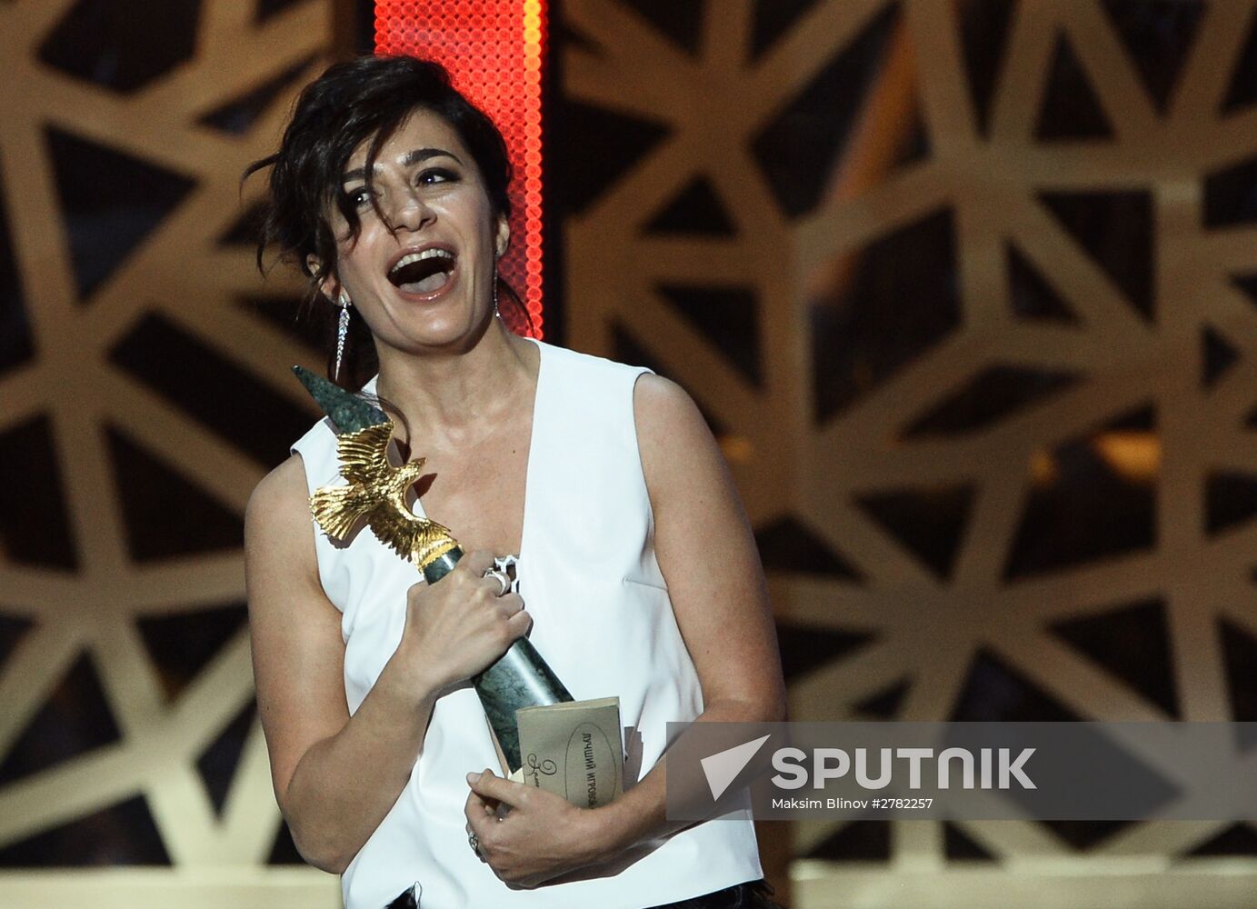 Film director, screenwriter Anna Melikyan, who won the Golden Eagle for Best Film (Pro Lyubov/About Love), during the Golden Eagle award ceremony, set up by the National Academy of Motion Picture Arts and Sciences, in the first pavilion of the Mosfilm Studio.