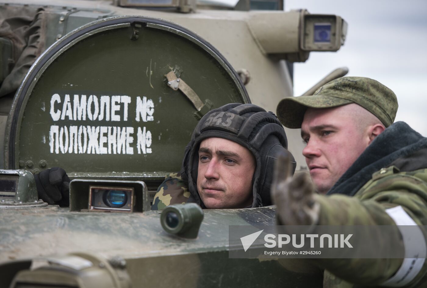The crew of a BMD-2 airborne fighting vehicle takes part in a command & headquarters exercise involving the 106th Guards Airborne Division in Russia's Ryazan Region.