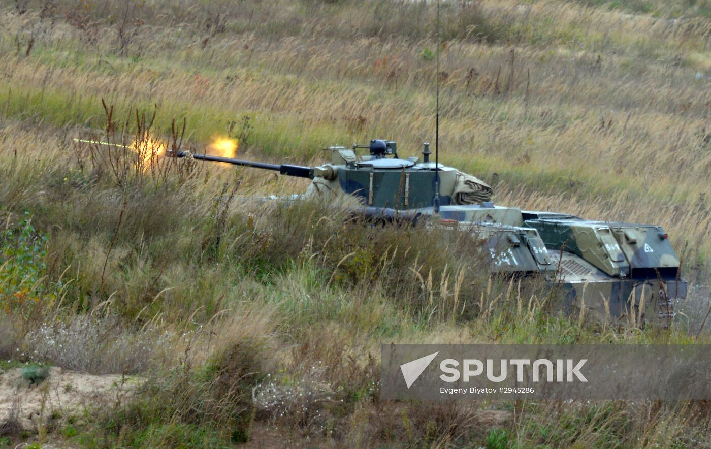 A BMD-2 airborne fighting vehicle fires its weapons during a command & headquarters exercise involving the 106th Guards Airborne Division in Russia's Ryazan Region.