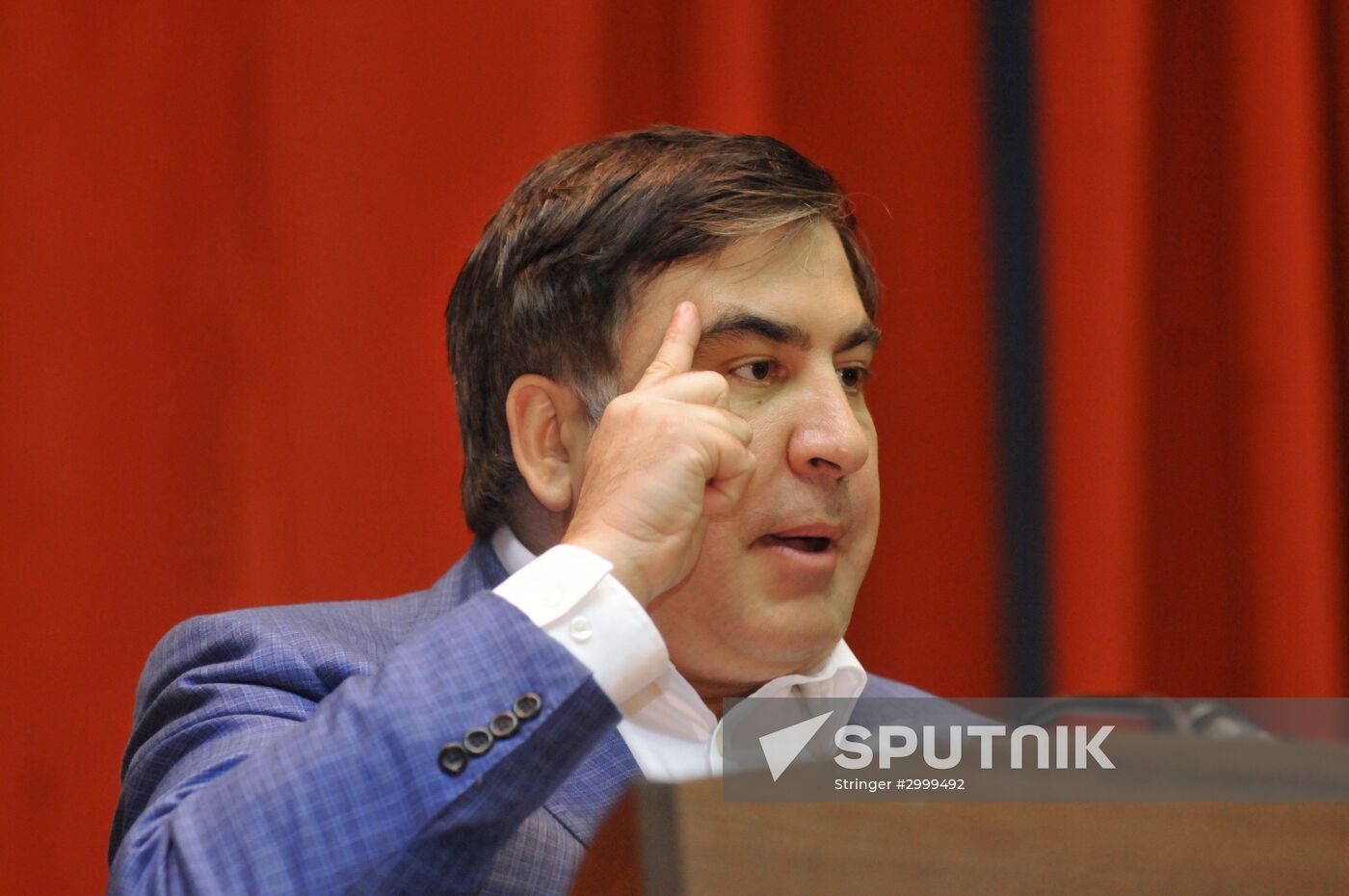 #2999492Mikheil Saakashvili, leader of the New Forces Movement and former governor of the Odessa Region, speaks at the Lviv Polytechnic National University in Lvov.Sign in or register,to downloadAdd to cartRemove from cartPackage: Mikheil Saakashvili's speech in LvovCategories: PoliticsLocation: Lviv, UkraineEvent date: 20.12.2016Date published: 21.12.2016Author: StringerCredit: SputnikSource: SputnikOriginal: DigitalMedia: JPEG, 4288x2848px, 7Mbdiscussionflaggesturehorizontallandscapetribune