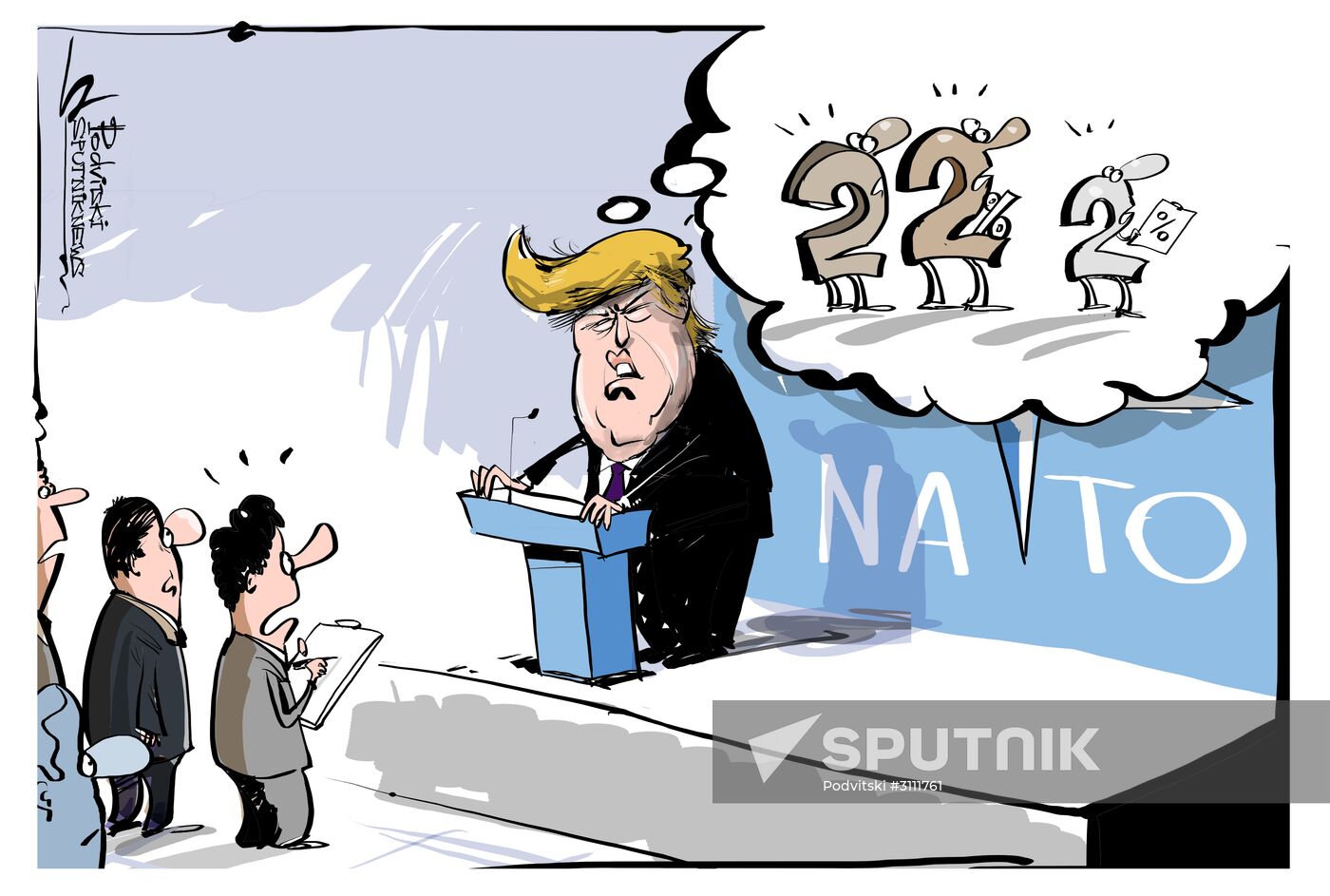 #3111761During the NATO summit of heads of states and governments, which took place in Brussels on Thursday, US President Donald Trump criticized member states for "not paying enough" for their own security.Sign in or register,to downloadAdd to cartRemove from cartCategories: Unrest, Conflicts & War, PoliticsLocation: Brussels, BelgiumEvent date: 26.05.2017Date published: 26.05.2017Author: PodvitskiCredit: SputnikOriginal: Computer graphicsMedia: JPEG, 5197x3499px, 3MbBrusselsDonald TrumpNATO
