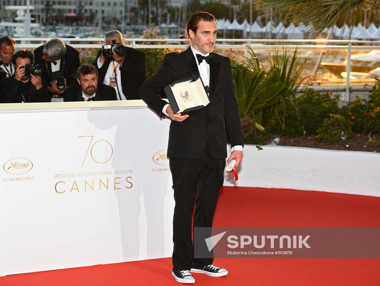 Actor Joaquin Phoenix (best actor award) at the photocall with winners of the 70th Cannes International Film Festival.