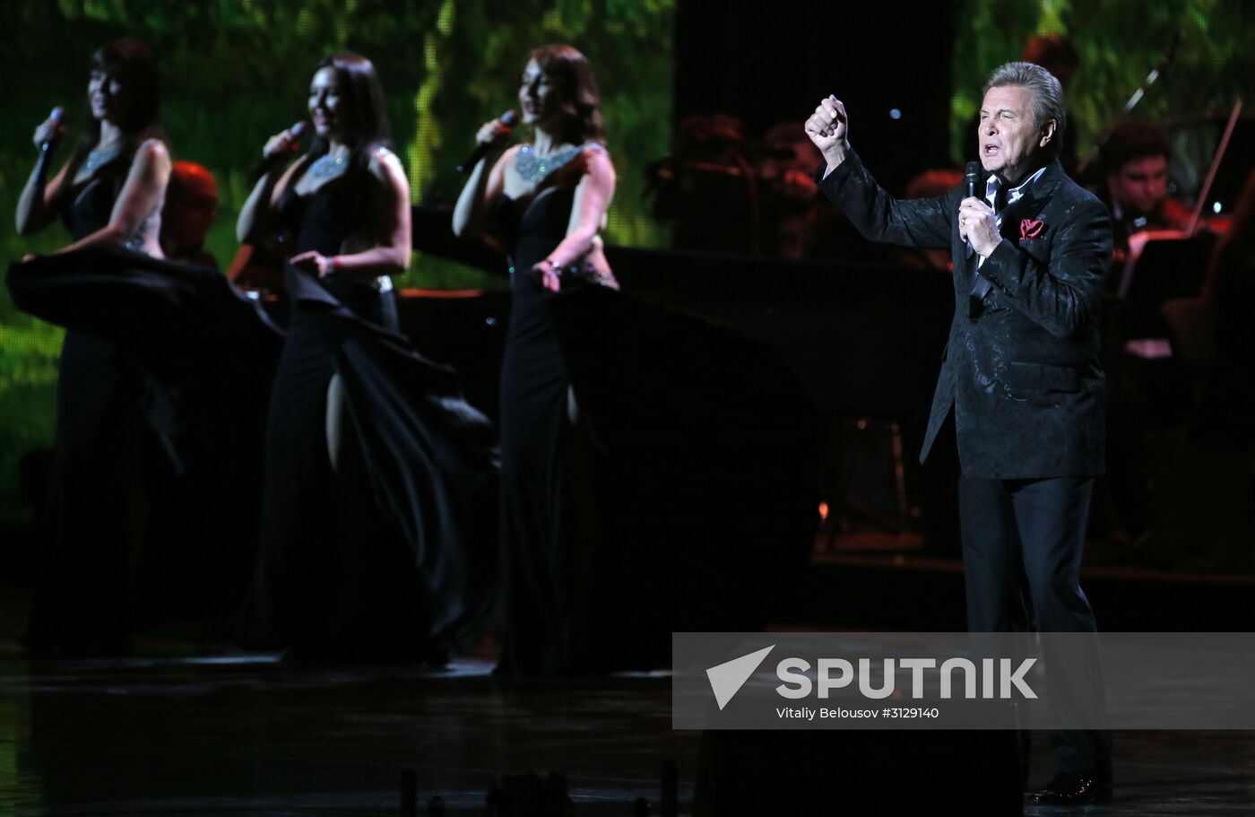 Singer Lev Leschenko performs at the music and poetry show "If Russia Be, I Will Be Too" marking poet Yevgeny Yevtushenko's 85th birthday at the State Kremlin Palace, Moscow.