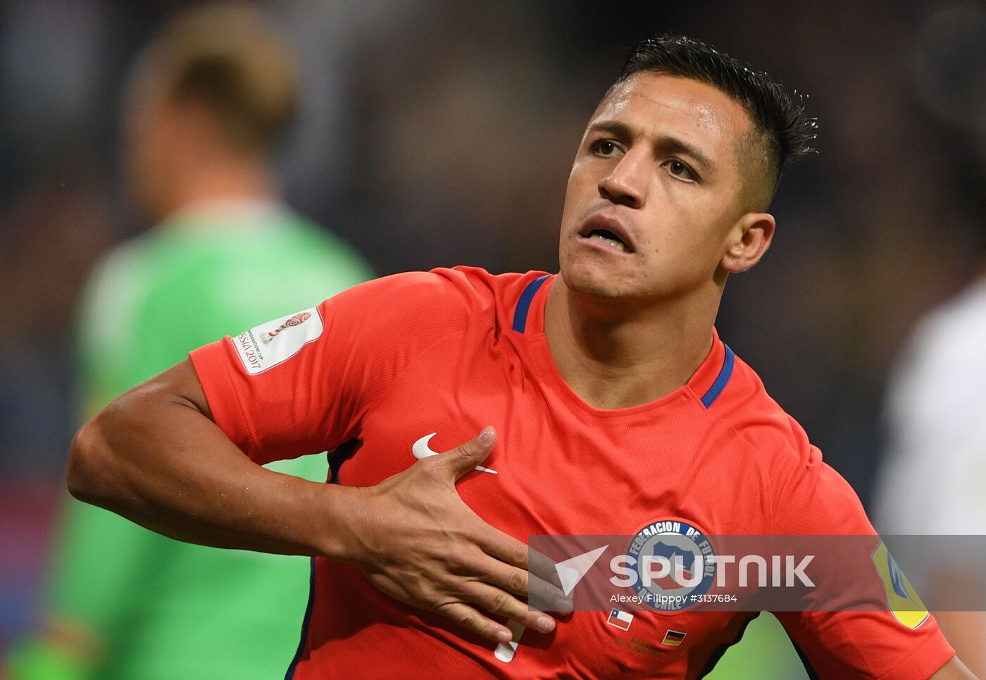 Chile's Alexis Sanchez celebrates a goal during the 2017 FIFA Confederations Cup match between Germany and Chile.