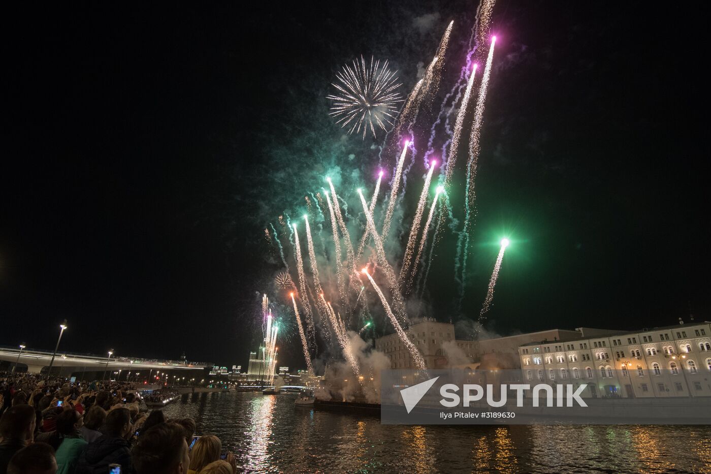 Fireworks marking the Moscow City Day by the Zaryadye Park.