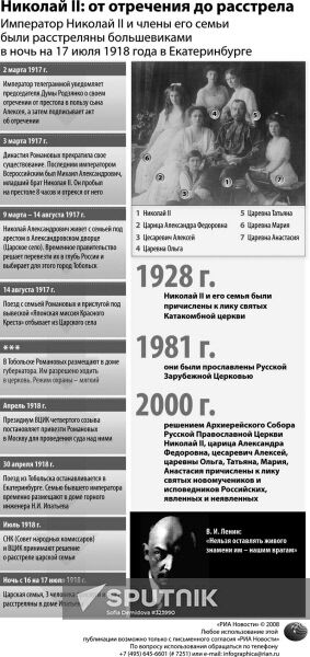 #323990No caption availableSign in or register,to downloadAdd to cartRemove from cartCategories: Unrest, Conflicts & War, PoliticsLocation: RussiaEvent date: 17.07.2008Date published: 16.07.2008Author: Sofia DemidovaCredit: SputnikSource: SputnikOriginal: DigitalMedia: JPEG, 283x600px, 97.9KbexecutionhistoryNicolas IIpowerrevolution