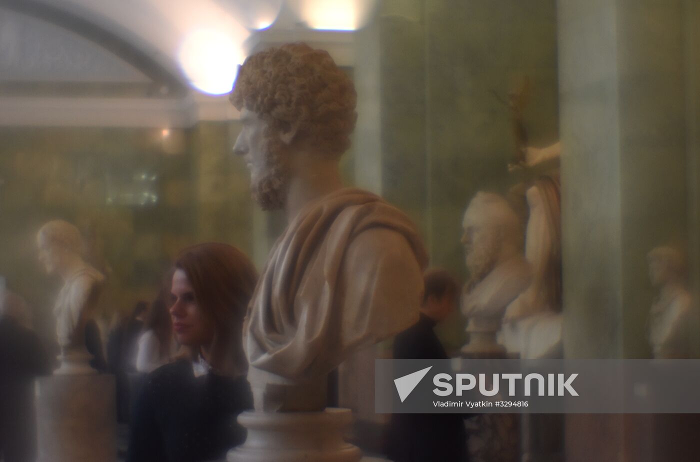 Marble sculpture "Bust of Emperor Lucius Verus" шт the Jupiter room (ancient Rome art of I-IV centuries) in St. Petersburg's State Hermitage Museum.