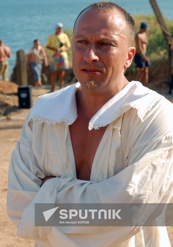 Actor Dmitry Nagiyev as Leon on the set of the film "The Return of the Musketeers or the Treasures of Cardinal Mazarin" directed by Georgy Yungvald-Khilkevich.