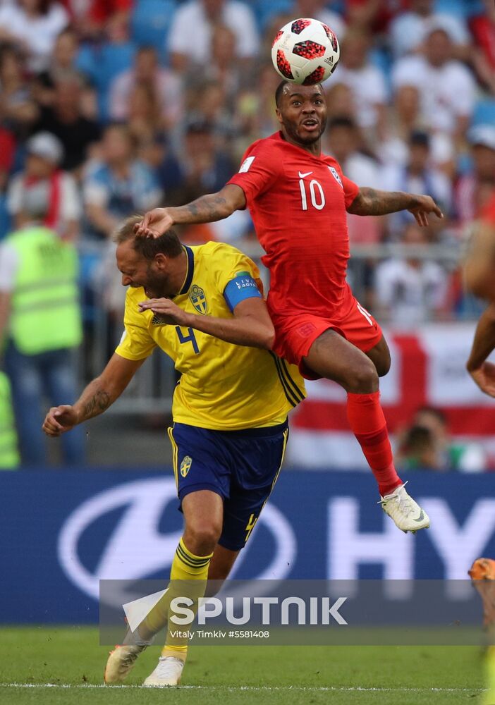 #5581408Sweden's Andreas Granqvist, left, and England's Raheem Sterling struggle for a ball during the World Cup quarterfinal soccer match between Sweden and England at the Samara Arena, in Samara, Russia, July 7, 2018. Sign in or register,to downloadAdd to cartRemove from cartPackage: Russia World Cup Sweden - EnglandCategories: SportsLocation: Samara, RussiaEvent date: 07.07.2018Date published: 07.07.2018Author: Vitaly TimkivCredit: SputnikSource: SputnikOriginal: DigitalMedia: JPEG, 1621x2310px, 2MbFIFAsoccerfootball