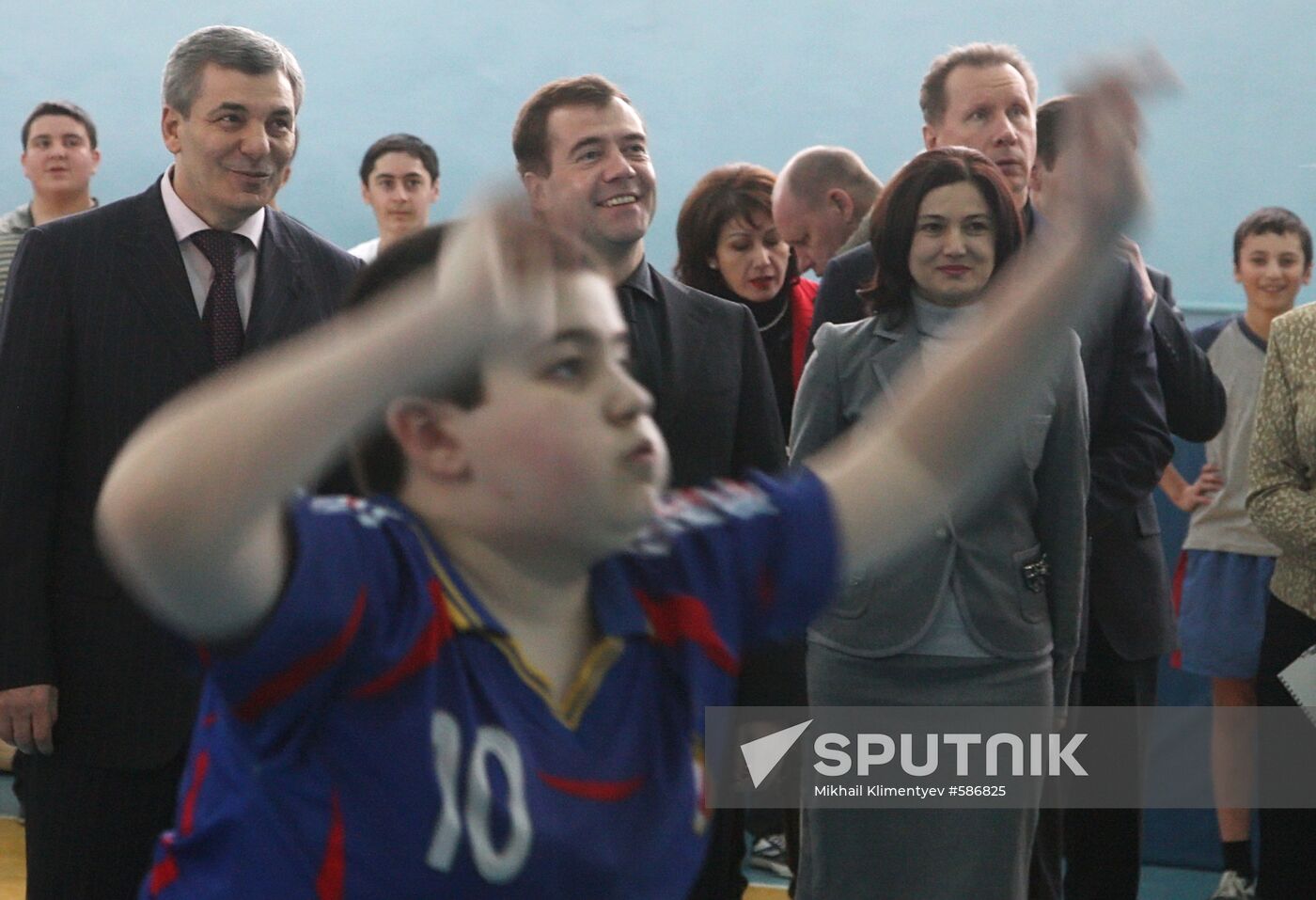 #586825Russian President Dmitry Medvedev, center in the background, visits Nalchik city school.At far left is Arsen Kanokov, President of the Republic of Kabardino-Balkaria, 27 February 2010.Sign in or register,to downloadAdd to cartRemove from cartPackage: Dmitry Medvedev in Kabardino-BalkariaCategories: Education, Sports, PoliticsLocation: Nalchik, Republic of Kabardino-Balkarya, RussiaEvent date: 27.02.2010Date published: 28.02.2010Author: Mikhail KlimentyevCredit: SputnikSource: SputnikOriginal: DigitalMedia: JPEG, 2725x1863px, 961Kbchildrenhead of statePE classteachers