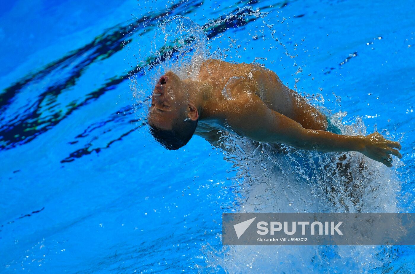 Colombia's Jennifer Cerquera Hatiusca and Gustavo Adolfo Sanchez compete during the artistic swimming mixed duet free final at the World Aquatics Championships, in Gwangju, South Korea.