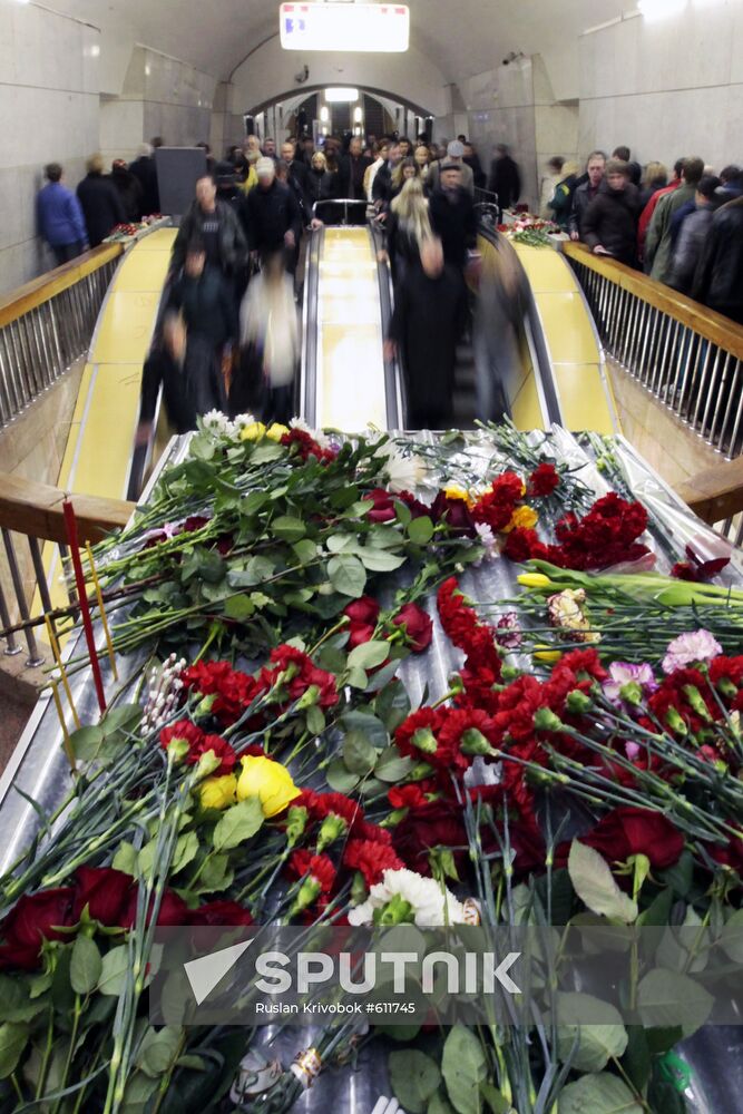 Flowers at the Moscow-based Lubyanka metro station rocked by an explosion on March 29.