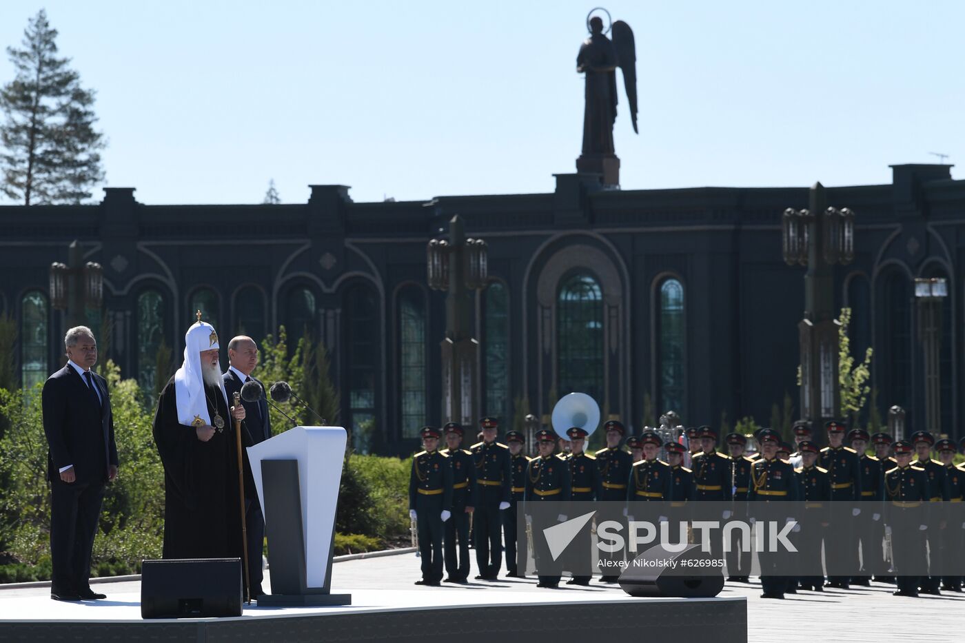 Russian President Vladimir Putin, Defence Minister Sergei Shoigu and Patriarch Kirill of Moscow and All Russia visit the Resurrection of Christ Cathedral, the main Orthodox cathedral serving the Russian Armed Forces, on the Day of Memory and Grief near Kubinka, Moscow region, Russia. On June 22 Russia marks 79th anniversary since Nazy Germany troops invade the USSR during World War Two.