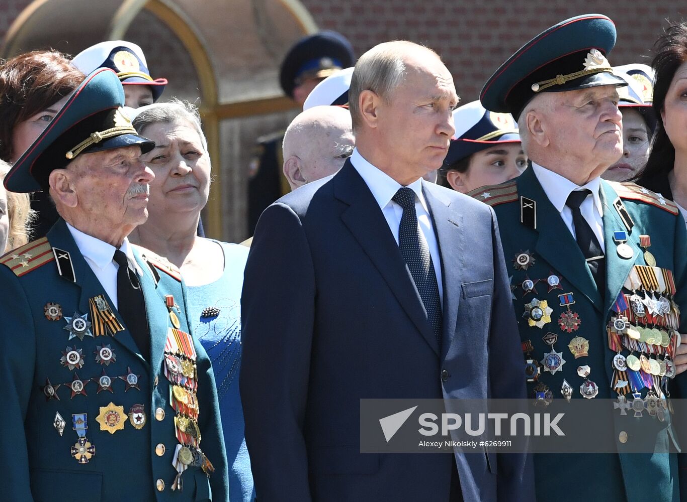 Russian President Vladimir Putin reviews the honour guard passing by during a wreath laying ceremony on the Day of Memory and Grief, at the Tomb of the Unknown Soldier by the Kremlin wall in Moscow, Russia. On June 22 Russia marks 79th anniversary since Nazy Germany troops invade the USSR during World War Two.