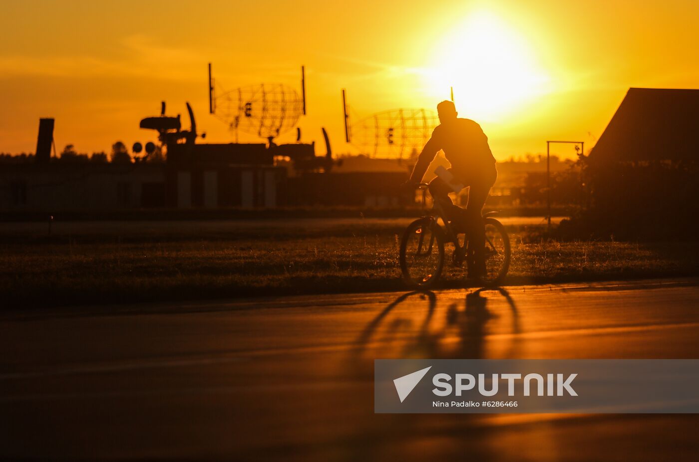 A flight technician prepares an aircraft ahead of a training flight at the V. P. Chkalov state center for training aviation personnel and military tests of the Ministry of defense of the Russian Federation in Lipetsk, Russia.