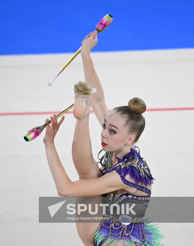 #6355550Belarus' Daria Tkacheva performs with clubs during the individual all-around program at the match meeting of the national teams of Russia and Belarus during the competition for the Russian Cup in rhythmic gymnastics, in Moscow, Russia.Sign in or register,to downloadAdd to cartRemove from cartPackage: Russia Belarus Rhythmic GymnasticsCategories: SportsLocation: Moscow, RussiaEvent date: 12.10.2020Date published: 12.10.2020Author: Grigory SysoevCredit: SputnikSource: SputnikOriginal: DigitalMedia: JPEG, 2298x2910px, 3.2MbJob-ID: 9cd7e890a79a353b