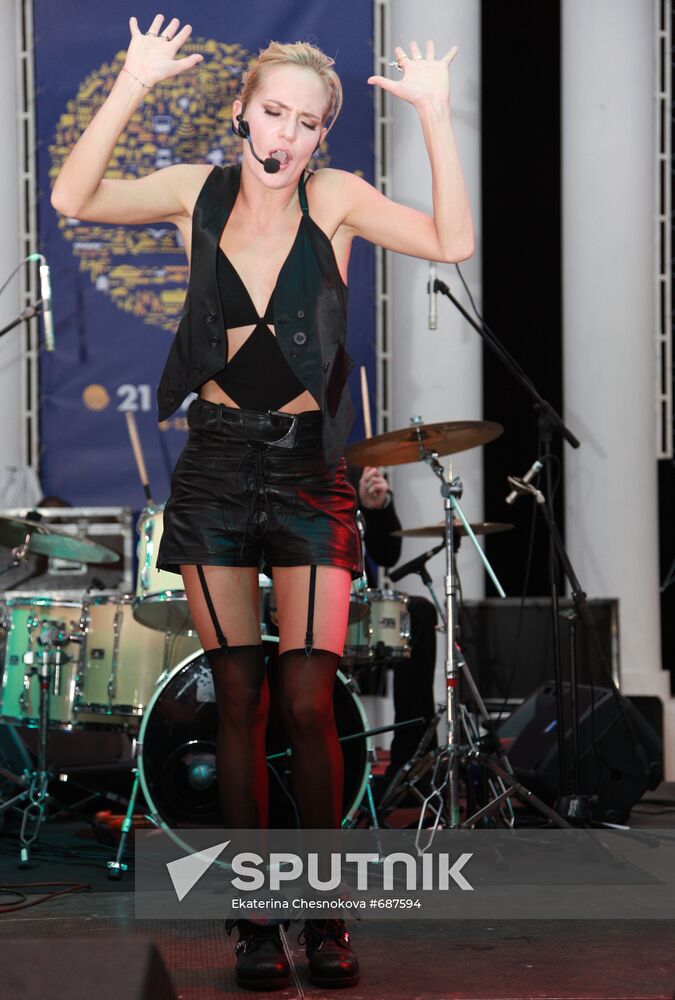 Singer Natalya Ionova (Glyukoza) performing at the reception after the opening of the 21st Kinotavr Film Festival in Sochi.