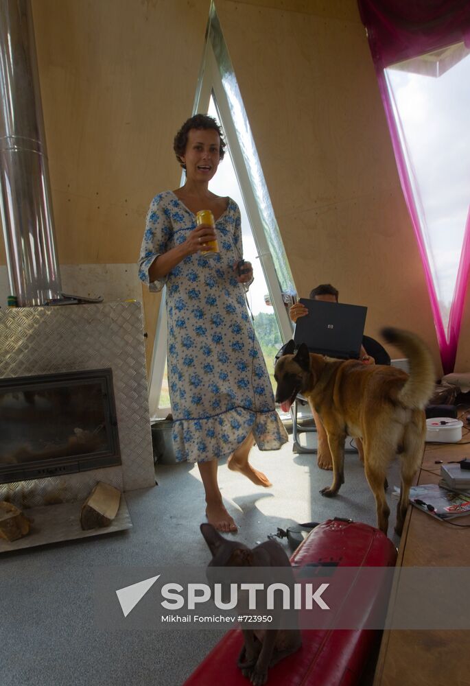Singer Yulia Chicherina giving an interview to RIA Novosti correspondents in her country house.