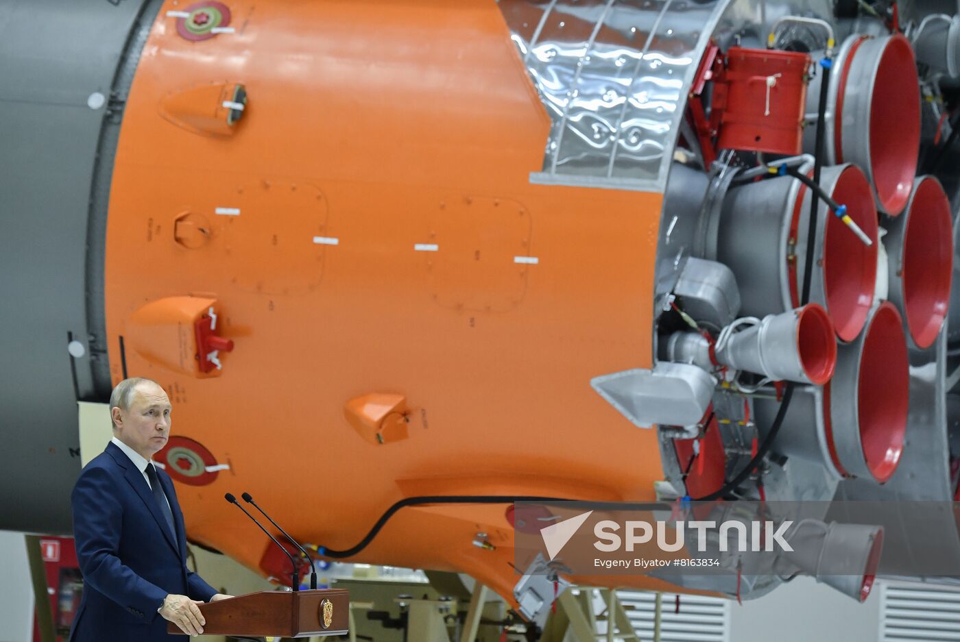 Russian President Vladimir Putin speaks at a ceremony to present government awards at an assembly and test facility at the Vostochny Cosmodrome, some 180 km north of Blagoveschensk, Amur region, Russia.