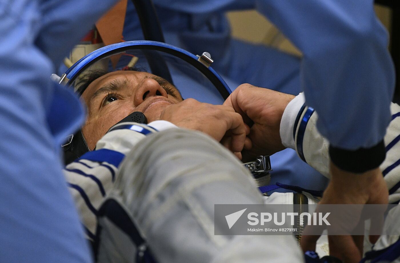 Crew member NASA astronaut Frank Rubio is seen during space suits check shortly before the launch to the International Space Station (ISS) at the Baikonur Cosmodrome, Kazakhstan.