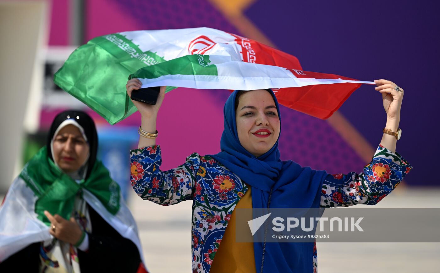 #8324363Iran's supporters wait before the start of the Qatar 2022 World Cup Group B soccer match between Wales and Iran at the Ahmad Bin Ali Stadium in Doha, Qatar.Sign in or register,to downloadAdd to cartRemove from cartPackage: Qatar Soccer World Cup Wales - IranCategories: SportsLocation: Ar-Rayyan, QatarEvent date: 25.11.2022Date published: 25.11.2022Author: Grigory SysoevCredit: SputnikSource: SputnikOriginal: DigitalMedia: JPEG, 6738x4176px, 13.1MbJob-ID: 3c2c57760149128efansfootballFIFA