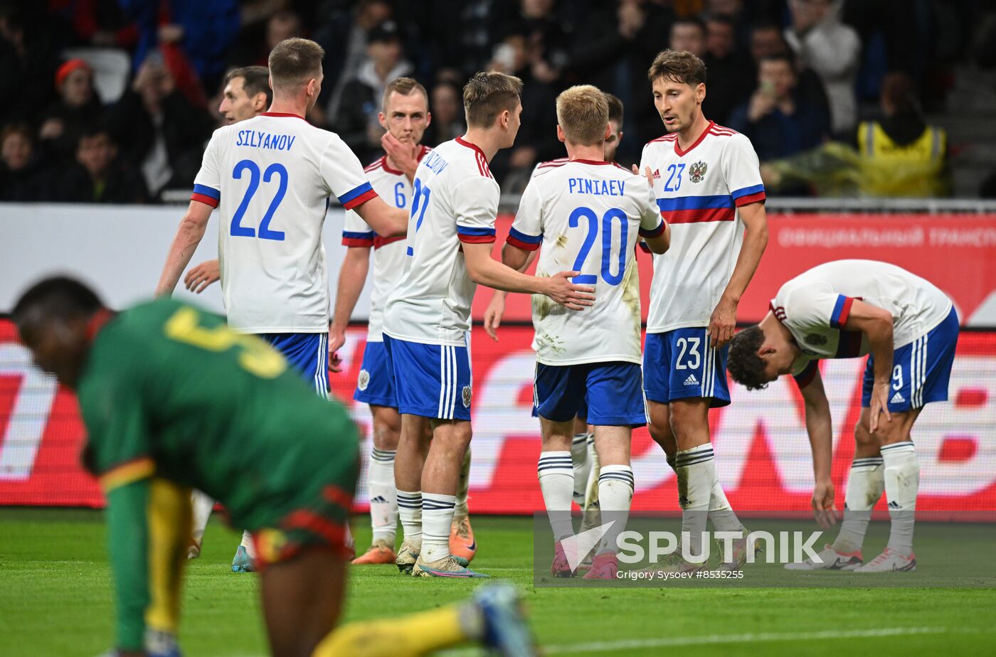 #8535255Russia's players celebrate a goal during the friendly soccer match between Russia and Cameroon, in Moscow, Russia.Sign in or register,to downloadAdd to cartRemove from cartPackage: Russia Soccer Friendly Russia - CameroonCategories: SportsLocation: Moscow, RussiaEvent date: 12.10.2023Date published: 12.10.2023Author: Grigory SysoevCredit: SputnikSource: SputnikOriginal: DigitalMedia: JPEG, 7380x4872px, 20MbJob-ID: 83ee003c00337baefootball