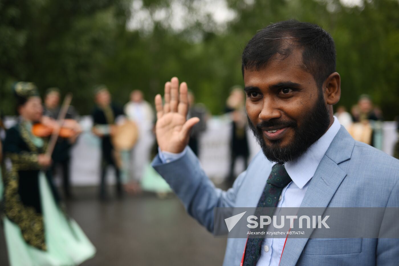 Foreign participants attend the closing ceremony of the 2024 BRICS Sports Games in the village of Mirny, outside Kazan, Republic of Tatarstan, Russia.