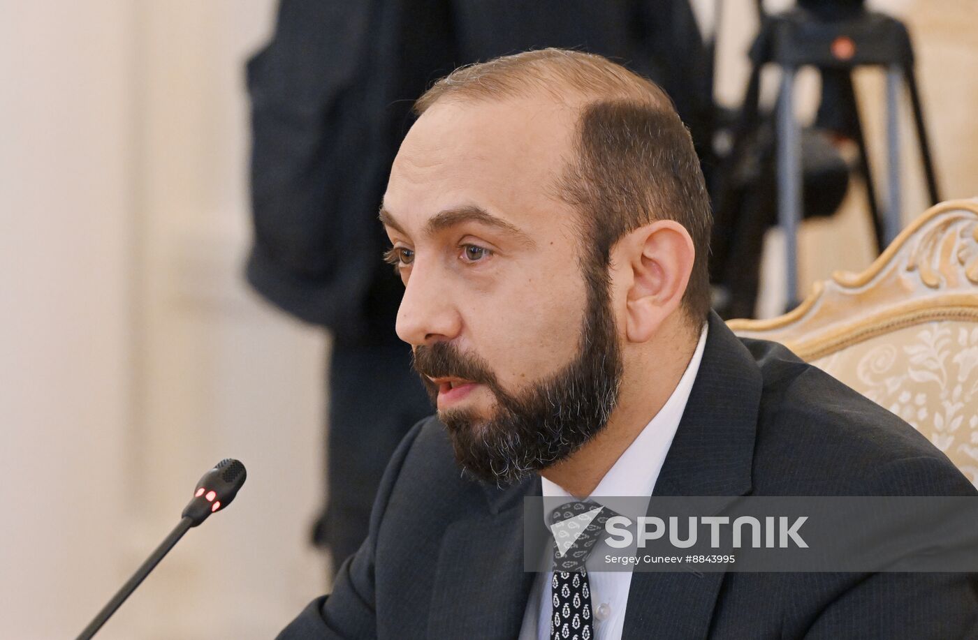 #8843995Armenian Foreign Minister Ararat Mirzoyan attends a meeting with Russian Foreign Minister Sergey Lavrov in Moscow, Russia.Sign in or register,to downloadAdd to cartRemove from cartPackage: Russia ArmeniaCategories: PoliticsLocation: Moscow, RussiaEvent date: 21.01.2025Date published: 21.01.2025Author: Sergey GuneevCredit: SputnikSource: SputnikOriginal: DigitalMedia: JPEG, 6330x4144px, 16.2MbJob-ID: 410c481588aba214