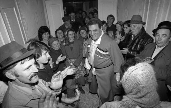 An ethnic Circassian, employee of the embassy of the Arab Republic of Egypt, center, visits his relatives in Moscow.15.11.1991#6685890