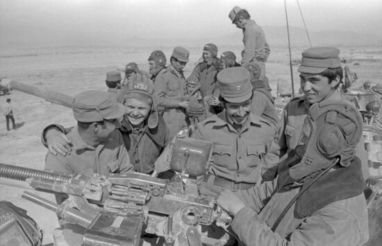 The Afghan War of 1979-1989. The Limited Soviet Military Contingent in the Democratic Republic of Afghanistan, now the Islamic Emirate of Afghanistan. Photo: The crew of an Afghan tank.25.07.1988#8430313