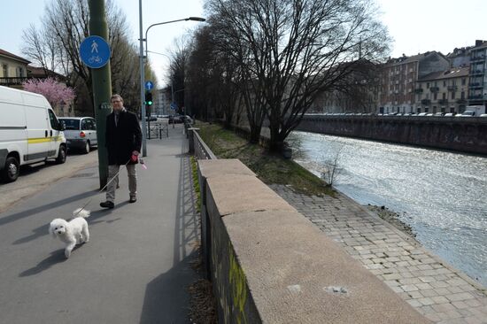 A man carries seedlings for planting during the Literary Subbotnik on Arbat event in Moscow.20.04.2013#1452431
