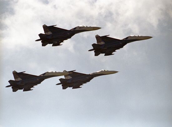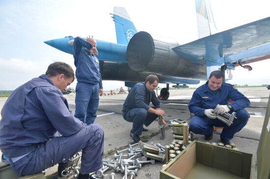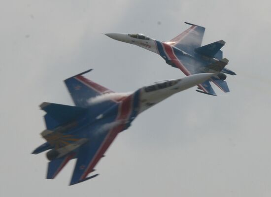 The Falcons of Russia aerobatic display team during the international stage of Aviadarts-2014 air force competition in Lipetsk.28.07.2014#2469632