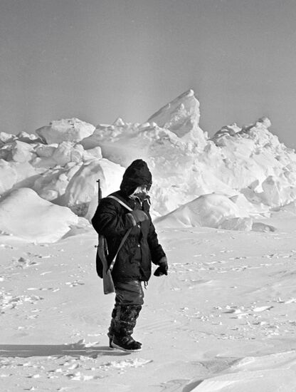 The North Pole-12 station's chief Nikolai Kudryavtsev, Ph.D. (Technology), making a round of "his estate"16.04.1964#31938