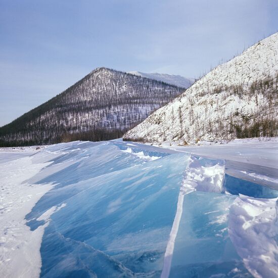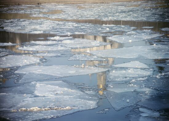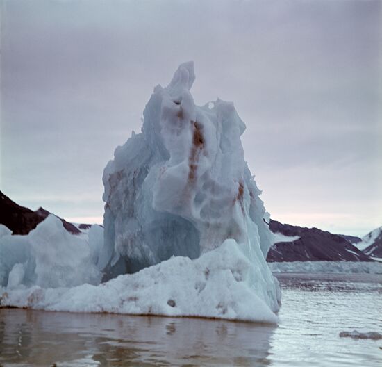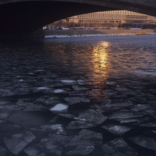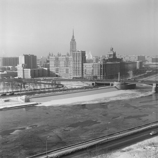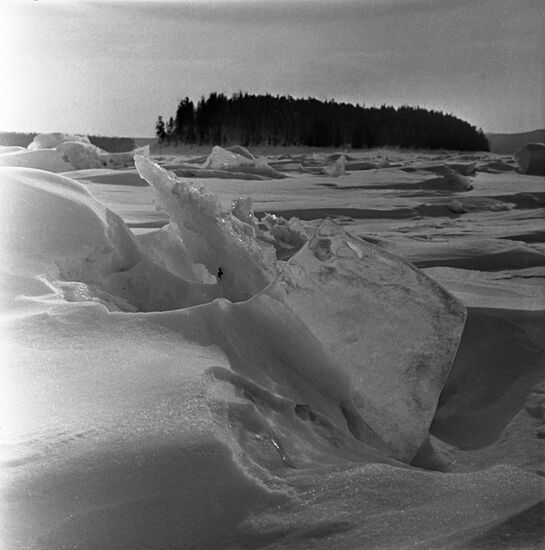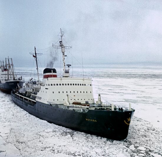 Moskva icebreaker built on the Soviet Union's order in Finland (Wartsila shipyard) cuts the ice on the River Yenisei.01.07.1965#5683257