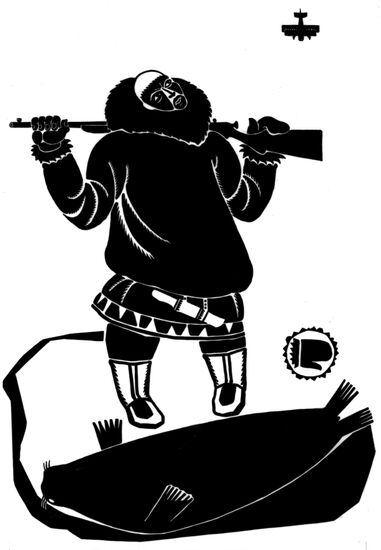 Engraving on gypsum "Chukcha hunter" by Gherman Cheryomushkin. 1968. From the series "Chukotka." Copy.01.03.1969#756304