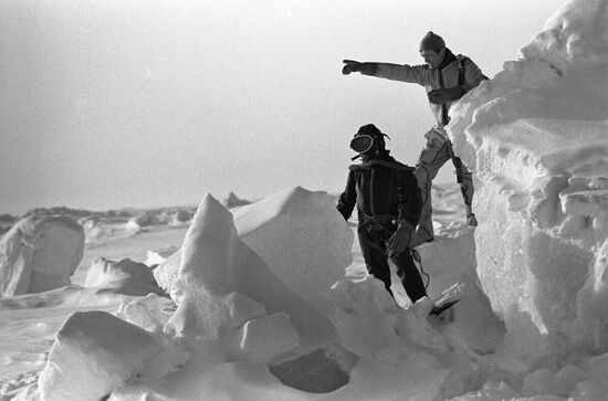 The Soviet drifting ice station North Pole-22 (NP-22), opened on September 13, 1973. Scuba divers before submerging underwater.01.06.1974#2908945