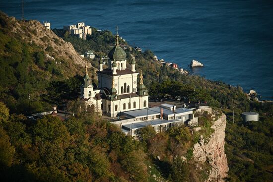 A view shows the Church of the Resurrection of Christ overlooking the village of Foros, Republic of Crimea, Russia.25.10.2025#9035790