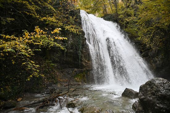Tourists walk along the road to the Djur-Djur waterfall in the Republic of Crimea, Russia.26.10.2025#9035808