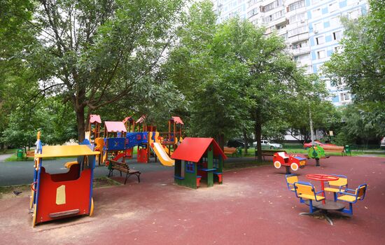A playground in the courtyard at 9, Raspletina Street, Shchukino district of Moscow.19.07.2018#5595768