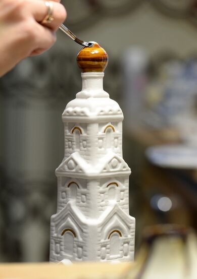 Artistic design of a porcelain piece at the painting shop at the Moscow Region's Gzhel porcelain factory.12.11.2015#2737102