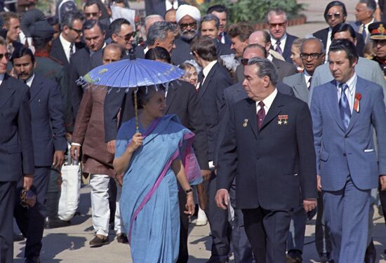 General Secretary of the CPSU Central Committee Leonid Ilyich Brezhnev visited the Republic of India. L.I.Brezhnev (second from right) was saw-off at Palam aerodrome by Prime Minister of India Indira Gandhi and other state officials.30.11.1974#588366