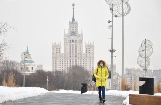 A man crosses Krymsky Bridge in central Moscow during the COVID-19 pandemic in Moscow, Russia.08.02.2021#6457318