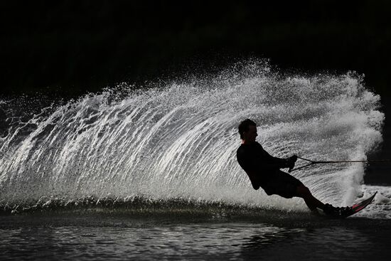 An athlete competes in the men's slalom event during the Russian Water Skiing Championship at the Ruzino reservoir in Moscow region, Russia.20.08.2022#8256255