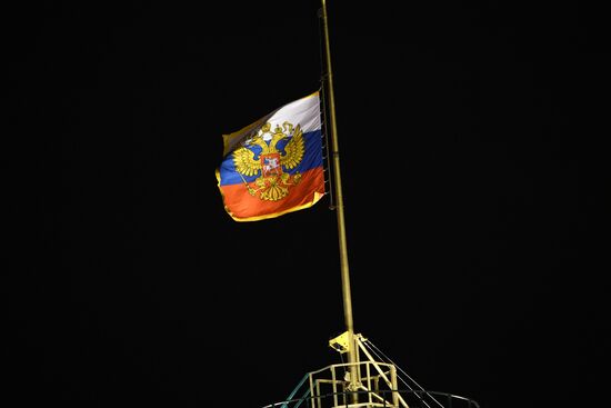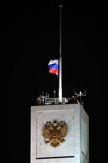 Flag flown at half-staff on the Federation Council building in memory of the Kemerovo fire victims.28.03.2018#5465323
