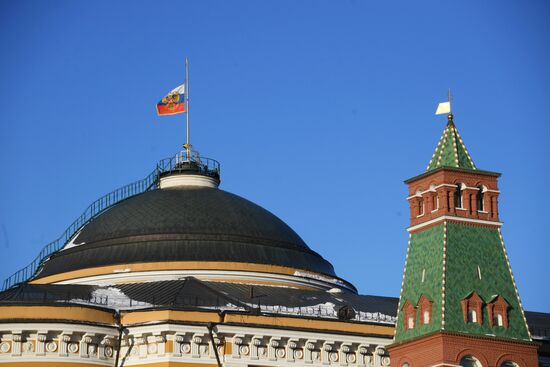 Russian presidential standard flown at half-staff on the Senate at the Moscow Kremlin in memory of the Kemerovo fire victims.28.03.2018#5465232