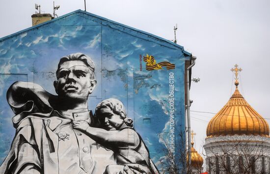 Passers-by on a street in Moscow, decorated with posters ahead of celebrations marking the 73rd anniversary of Victory in the Great Patriotic War.06.05.2018#5491150
