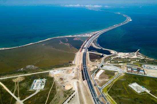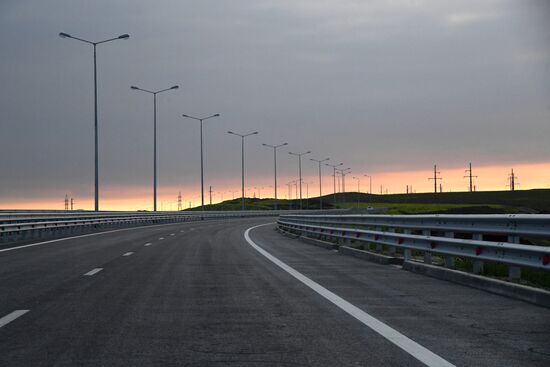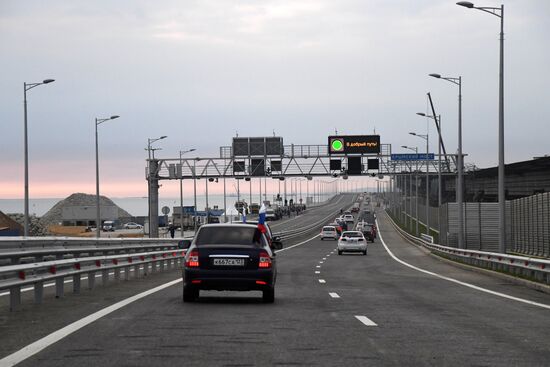 Motorcyclists on the Crimean Bridge. Front: Alexander Zaldastanov, President of the Night Wolves biking club.16.05.2018#5502234