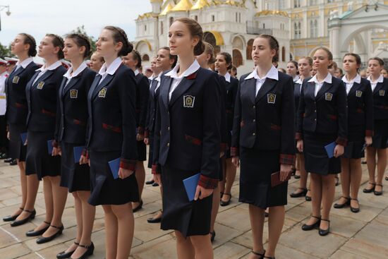 Cadets of the Defense Ministry Cadet School at the Commencement Ceremony for officers graduating from the Defense Ministry's higher military educational institutions on the Cathedral Square in the Kremlin.23.06.2018#5551376